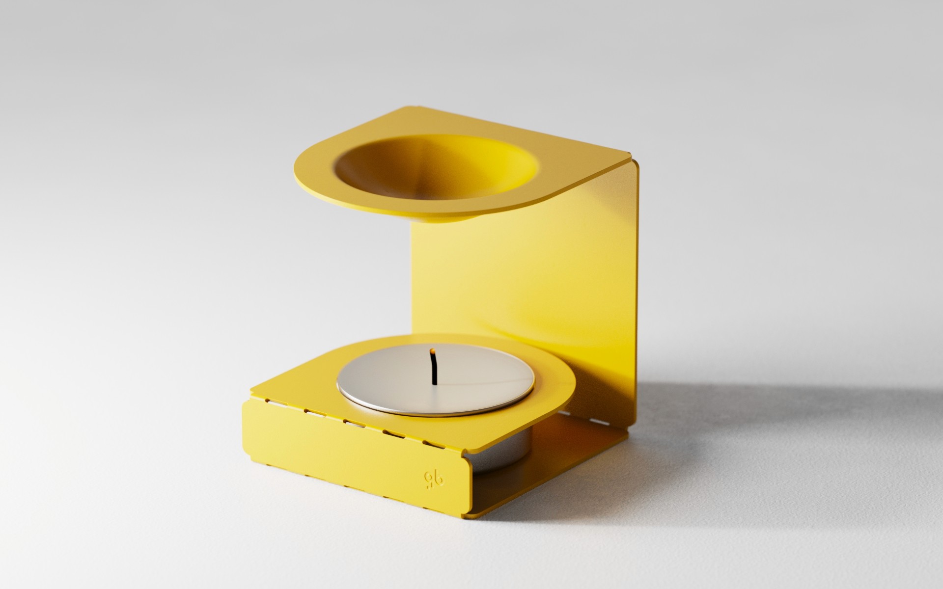 This DIY piece arrives flat-packed and requires no hardware for assembly; Given intentional folds transforms the flat sheet metal into a functional vessel for the candle.